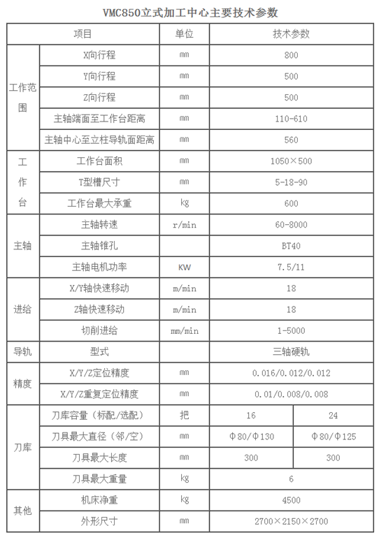 VMC850立式加工中心����� �������Ƴ������������ �������Ƴ������������ �������Ƴ������������ �������Ƴ�������主要性能特点